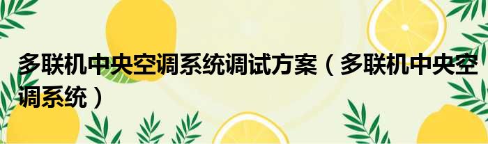 导读 大家好,今天小六子来为大家解答以下的问题,关于多联机中央空调系统调试方案,多联机中央空调系统这个很多人还不知道,现在让我们一起来看