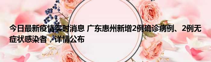 今日最新疫情实时消息 广东惠州新增2例确诊病例、2例无症状感染者,详情公布