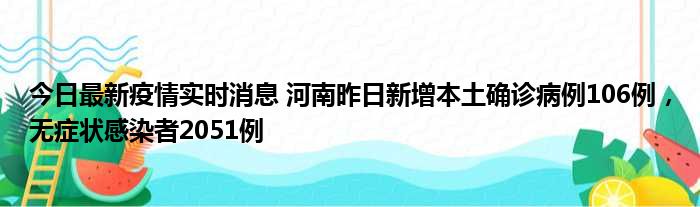 您的位置:首页 >房产频道 > 综合精选 > 今日最新疫情实时消息 河南昨日新增本土确诊病例106例,无症状感染者2051例 2022-11-25 11:02:17 • 来源: 导读 免责声明:本文由用户上传,如有侵权请联系删除! 上一篇:三个女朋友两个头两女一男谢谢 下一篇:科教兴国战略提出标志(科教兴国战略提出时间)