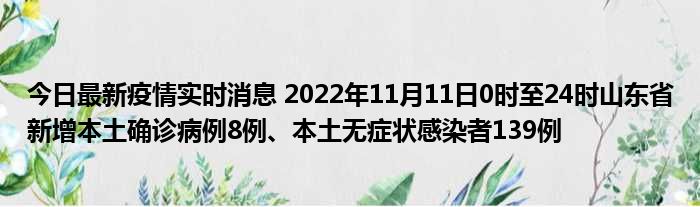 您的位置:首页 >房产频道 > 综合精选 > 今日最新疫情实时消息 2022年11月11日0时至24时山东省新增本土确诊病例8例、本土无症状感染者139例 2022-11-25 11:34:14 • 来源: 导读 免责声明:本文由用户上传,如有侵权请联系删除! 上一篇:动漫英文电影推荐(动漫英文) 下一篇:今日最新疫情实时消息 深圳11月11日新增2例确诊病例和5例无症状感染者,详情公布