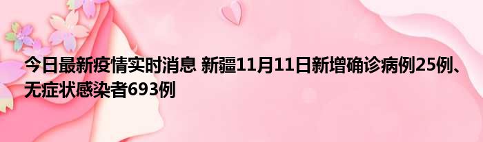 据新疆卫健委,11月11日0时至24时,新疆维吾尔自治区新增确诊病例25例,新增无症状感染者693例,新增确诊病例治愈出院7例,新增无症状感染者解除隔离医学观察120例