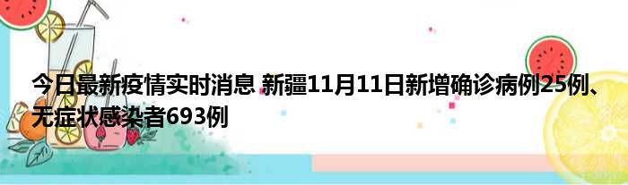 据新疆卫健委,11月11日0时至24时,新疆维吾尔自治区新增确诊病例25例,新增无症状感染者693例,新增确诊病例治愈出院7例,新增无症状感染者解除隔离医学观察120例