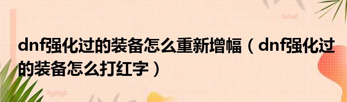 dnf强化过的装备怎么重新增幅(dnf强化过的装备怎么打红字)