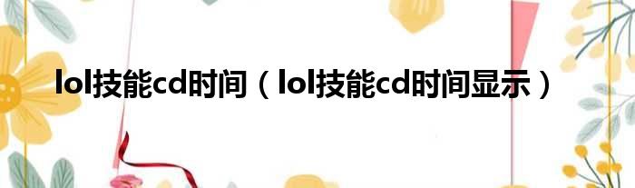 大家好,今天小六子来为大家解答以下的问题,关于lol技能cd时间,lol技能cd时间显示这个很多人还不知道,现在让我们一起来看看吧!