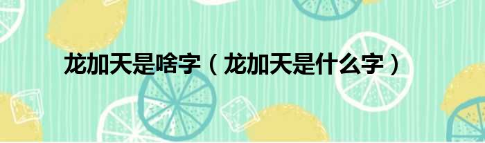 大家好,今天小六子来为大家解答以下的问题,关于龙加天是啥字,龙加天是什么字这个很多人还不知道,现在让我们一起来看看吧!