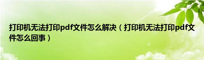 打印机无法打印pdf文件怎么解决(打印机无法打印pdf文件怎么回事)