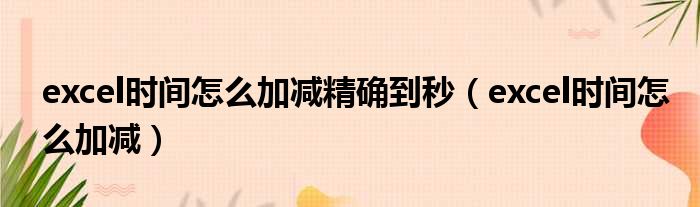excel时间怎么加减精确到秒(excel时间怎么加减)