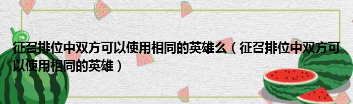 征召排位中双方可以使用相同的英雄么(征召排位中双方可以使用相同的英雄)