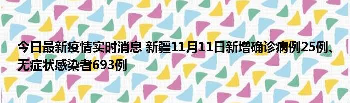 据新疆卫健委,11月11日0时至24时,新疆维吾尔自治区新增确诊病例25例,新增无症状感染者693例,新增确诊病例治愈出院7例,新增无症状感染者解除隔离医学观察120例