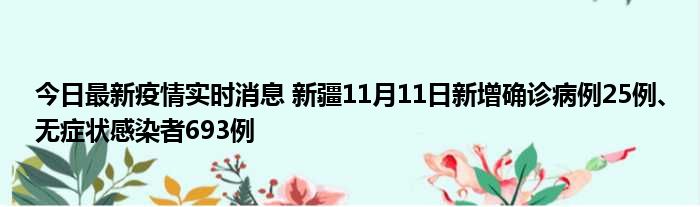据新疆卫健委,11月11日0时至24时,新疆维吾尔自治区新增确诊病例25例,新增无症状感染者693例,新增确诊病例治愈出院7例,新增无症状感染者解除隔离医学观察120例