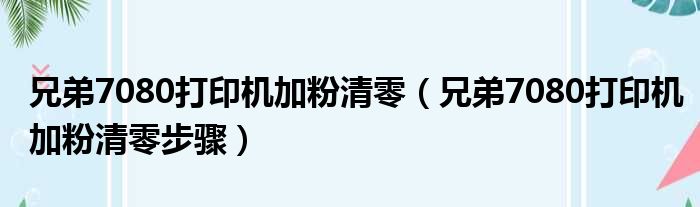 兄弟7080打印机加粉清零(兄弟7080打印机加粉清零步骤)