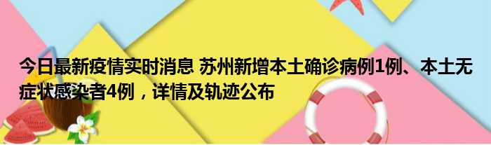 今日最新疫情实时消息 苏州新增本土确诊病例1例、本土无症状感染者4例,详情及轨迹公布