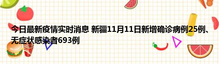 据新疆卫健委,11月11日0时至24时,新疆维吾尔自治区新增确诊病例25例,新增无症状感染者693例,新增确诊病例治愈出院7例,新增无症状感染者解除隔离医学观察120例