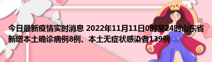 您的位置:首页 >房产频道 > 综合精选 > 今日最新疫情实时消息 2022年11月11日0时至24时山东省新增本土确诊病例8例、本土无症状感染者139例 2022-11-25 21:30:14 • 来源: 导读 免责声明:本文由用户上传,如有侵权请联系删除! 上一篇:今日最新疫情实时消息 新疆11月11日新增确诊病例25例、无症状感染者693例 下一篇:常文霞预约电话(常文霞)