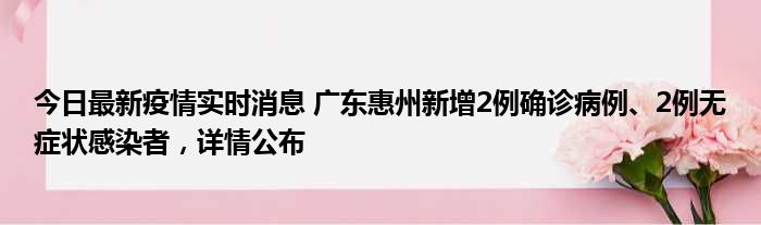 今日最新疫情实时消息 广东惠州新增2例确诊病例、2例无症状感染者,详情公布