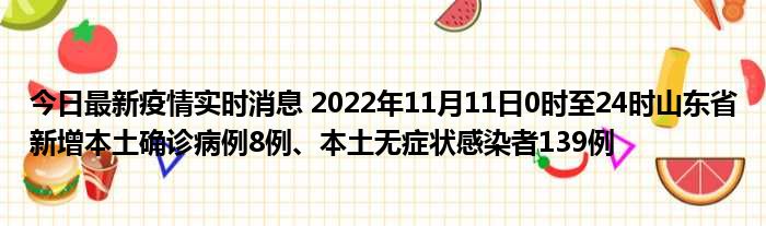 您的位置:首页 >房产频道 > 综合精选 > 今日最新疫情实时消息 2022年11月11日0时至24时山东省新增本土确诊病例8例、本土无症状感染者139例 2022-11-25 23:30:13 • 来源: 导读 免责声明:本文由用户上传,如有侵权请联系删除! 上一篇:今日最新疫情实时消息 北京朝阳区新增确诊病例1例,划定封控区 下一篇:红烧肉的做法最简单的方法(红烧肉的做法最简单的做法)