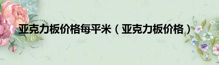 导读 大家好,今天小六子来为大家解答以下的问题,关于亚克力板价格每平米,亚克力板价格这个很多人还不知道,现在让我们一起来看看吧!1、按公斤