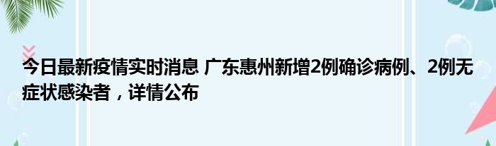 今日最新疫情实时消息 广东惠州新增2例确诊病例、2例无症状感染者,详情公布
