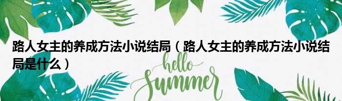 导读 大家好,今天小六子来为大家解答以下的问题,关于路人女主的养成方法小说结局,路人女主的养成方法小说结局是什么这个很多人还不知道,现在