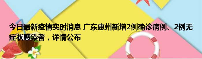 今日最新疫情实时消息 广东惠州新增2例确诊病例、2例无症状感染者,详情公布