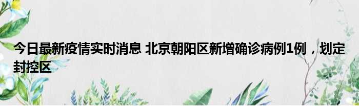 今日最新疫情实时消息 北京朝阳区新增确诊病例1例,划定封控区