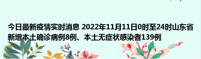 您的位置:首页 >房产频道 > 综合精选 > 今日最新疫情实时消息 2022年11月11日0时至24时山东省新增本土确诊病例8例、本土无症状感染者139例 2022-11-26 04:28:13 • 来源: 导读 免责声明:本文由用户上传,如有侵权请联系删除! 上一篇:社会监督的途径和方式有哪些(社会监督的途径和方式有哪些) 下一篇:今日最新疫情实时消息 新疆乌鲁木齐市新增本土确诊病例27例、本土无症状感染者664例