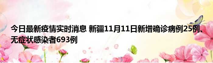 据新疆卫健委,11月11日0时至24时,新疆维吾尔自治区新增确诊病例25例,新增无症状感染者693例,新增确诊病例治愈出院7例,新增无症状感染者解除隔离医学观察120例