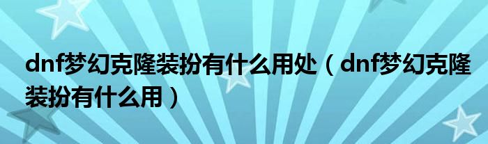 dnf梦幻克隆装扮有什么用处(dnf梦幻克隆装扮有什么用)
