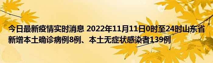 您的位置:首页 >房产频道 > 综合精选 > 今日最新疫情实时消息 2022年11月11日0时至24时山东省新增本土确诊病例8例、本土无症状感染者139例 2022-11-26 06:08:16 • 来源: 导读 免责声明:本文由用户上传,如有侵权请联系删除! 上一篇:吃拿卡要刁难群众违反了什么纪律(吃拿卡要) 下一篇:梅州盐焗鸡爪正宗做法(梅州盐焗鸡)