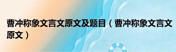 曹冲称象文言文原文及题目(曹冲称象文言文原文)