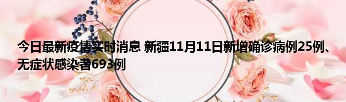 据新疆卫健委,11月11日0时至24时,新疆维吾尔自治区新增确诊病例25例,新增无症状感染者693例,新增确诊病例治愈出院7例,新增无症状感染者解除隔离医学观察120例
