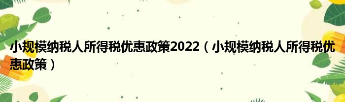 导读 大家好,今天小六子来为大家解答以下的问题,关于小规模纳税人所得税优惠政策2022,小规模纳税人所得税优惠政策这个很多人还不知道,现在让