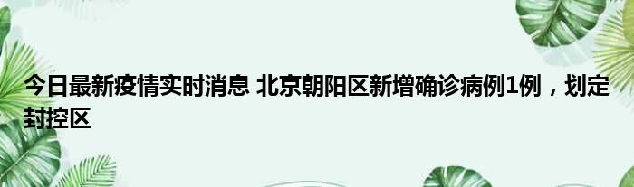 今日最新疫情实时消息 北京朝阳区新增确诊病例1例,划定封控区