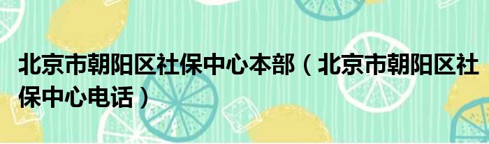 北京市朝阳区社保中心本部(北京市朝阳区社保中心电话)
