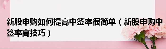 导读 大家好,今天小六子来为大家解答以下的问题,关于新股申购如何提高中签率很简单,新股申购中签率高技巧这个很多人还不知道,现在让我们一起