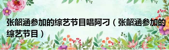 张韶涵参加的综艺节目唱阿刁(张韶涵参加的综艺节目)