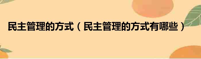大家好,今天小六子来为大家解答以下的问题,关于民主管理的方式,民主管理的方式有哪些这个很多人还不知道,现在让我们一起来看看吧!