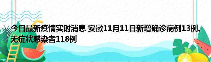 今日最新疫情实时消息 安徽11月11日新增确诊病例13例、无症状感染者118例