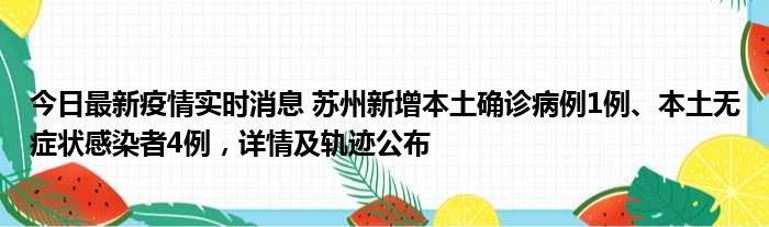 今日最新疫情实时消息 苏州新增本土确诊病例1例、本土无症状感染者4例,详情及轨迹公布