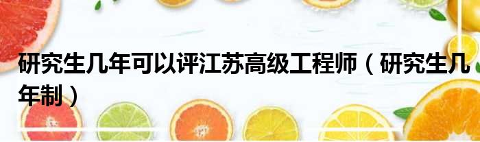 研究生几年可以评江苏高级工程师(研究生几年制)