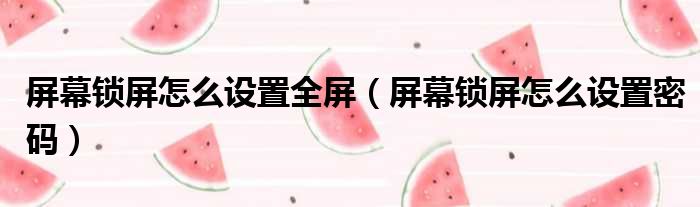 屏幕锁屏怎么设置全屏(屏幕锁屏怎么设置密码)