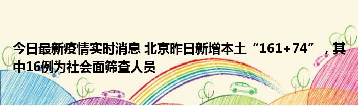 今日最新疫情实时消息 北京昨日新增本土“161+74”,其中16例为社会面筛查人员