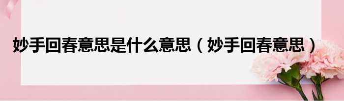 大家好,今天小六子来为大家解答以下的问题,关于妙手回春意思是什么意思,妙手回春意思这个很多人还不知道,现在让我们一起来看看吧!