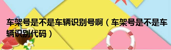 车架号是不是车辆识别号啊(车架号是不是车辆识别代码)