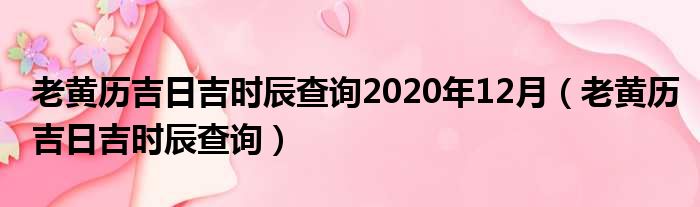 老黄历吉日吉时辰查询2020年12月(老黄历吉日吉时辰查询)
