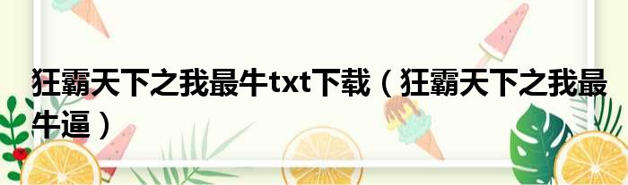 狂霸天下之我最牛txt下载(狂霸天下之我最牛逼)