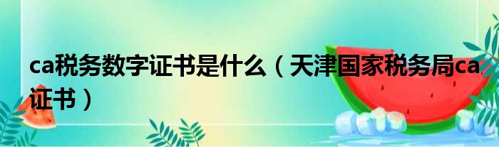 ca税务数字证书是什么(天津国家税务局ca证书)