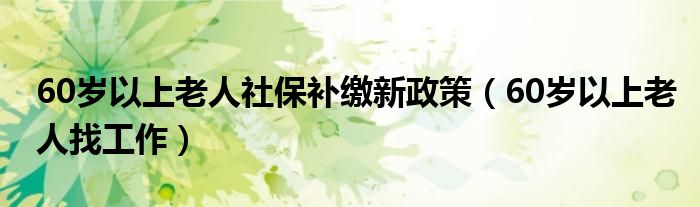 60岁以上老人社保补缴新政策(60岁以上老人找工作)