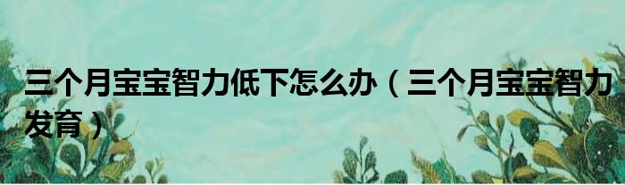 三个月宝宝智力低下怎么办(三个月宝宝智力发育)