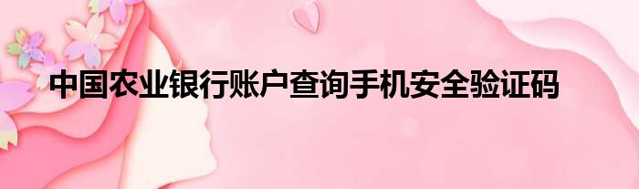 大家好,今天小六子来为大家解答以下的问题,关于中国农业银行账户查询手机安全验证码这个很多人还不知道,现在让我们一起来看看吧!
